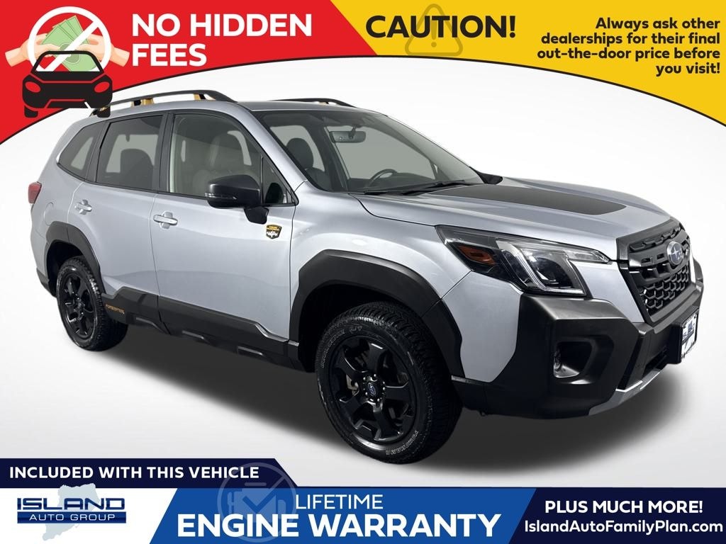4-Wheel Disc Brakes, 4.11 Axle Ratio, 6 Speakers, ABS brakes, Air Conditioning, Alloy wheels, AM/FM radio: SiriusXM, Anti-whiplash front head restraints, Audio System & Navigation & Power Rr Gate, Auto High-beam Headlights, Auto-Dimming Exterior Mirror w/Approach Lighting, Auto-Dimming Mirror w/Compass & HomeLink, Automatic temperature control, Brake assist, Bumpers: body-color, CD player, Driver door bin, Driver vanity mirror, Dual front impact airbags, Dual front side impact airbags, Electronic Stability Control, Emergency communication system: STARLINK Safety and Security (Subscription Required), Exterior Parking Camera Rear, Four wheel independent suspension, Front anti-roll bar, Front Bucket Seats, Front Center Armrest, Front dual zone A/C, Front fog lights, Front reading lights, Fully automatic headlights, harman/kardon 576W Amp & Speaker System, Heated door mirrors, Heated Front Bucket Seats, Heated front seats, Illuminated entry, Knee airbag, Leather Shift Knob, Low tire pressure warning, Navigation System, Occupant sensing airbag, Outside temperature display, Overhead airbag, Overhead console, Panic alarm, Passenger door bin, Passenger vanity mirror, Power door mirrors, Power driver seat, Power moonroof: Panoramic, Power Rear Gate, Power steering, Power windows, Radio data system, Radio: Subaru Starlink 8.0" Multimedia Nav System, Radio: Subaru Starlink 8.0" Multimedia Plus System, Rear anti-roll bar, Rear Bumper Cover, Rear seat center armrest, Rear window defroster, Rear window wiper, Remote keyless entry, Roof rack: rails only, Security system, Speed control, Speed-sensing steering, Split folding rear seat, Spoiler, STARLINK/Apple CarPlay/Android Auto, Steering wheel mounted audio controls, Tachometer, Telescoping steering wheel, Textured StarTex Upholstery, Tilt steering wheel, Traction control, Trip computer, Turn signal indicator mirrors, Variably intermittent wipers, Wheels: 17" x 7.0J Matte Black Machine Finish Alloy, Wilderness Rear Seatback Protector.