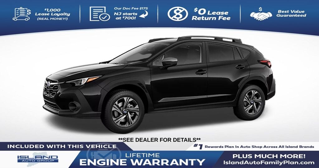 Crystal Black Silica 2026 Subaru Crosstrek Premium AWD Lineartronic CVT 2.5L 4-Cylinder DOHC 16V 10-Way Power Driver's Seat, 4-Wheel Disc Brakes, 6 Speakers, ABS brakes, Air Conditioning, All-Weather Package, Alloy wheels, Anti-whiplash front head restraints, Auto High-beam Headlights, Automatic temperature control, Blind Spot Detection (BSD), Brake assist, Bumpers: body-color, Cloth Upholstery, Convenience Package #2, Driver door bin, Driver vanity mirror, Dual front impact airbags, Dual front side impact airbags, Dual-Mode Heated Front Seats, Electronic Stability Control, Emergency communication system: MySubaru Companion (5-years free), Exterior Parking Camera Rear, Four wheel independent suspension, Front anti-roll bar, Front Bucket Seats, Front Center Armrest, Front dual zone A/C, Front fog lights, Front reading lights, Fully automatic headlights, Heated Power Exterior Mirrors, Illuminated entry, Knee airbag, Low tire pressure warning, Occupant sensing airbag, Outside temperature display, Overhead airbag, Overhead console, Panic alarm, Passenger door bin, Passenger vanity mirror, Power door mirrors, Power Moonroof, Power steering, Power windows, Radio data system, Radio: Subaru 11.6" Multimedia Plus System, Rear anti-roll bar, Rear Bumper Cover, Rear Cross-Traffic Alert (RCTA) System, Rear seat center armrest, Rear side impact airbag, Rear window defroster, Rear window wiper, Remote keyless entry, Security system, Speed control, Speed-sensing steering, Splash Guards, Split folding rear seat, Spoiler, Steering wheel mounted audio controls, Tachometer, Telescoping steering wheel, Tilt steering wheel, Traction control, Trip computer, Turn signal indicator mirrors, Variably intermittent wipers, Wheels: 17" x 7.0" J Machine Finish Aluminum-Alloy, Windshield De-Icer Wipers.