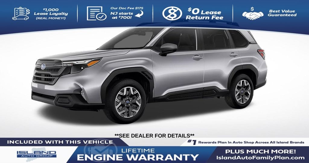 Ice Silver Metallic 2026 Subaru Forester Premium AWD Lineartronic CVT 2.5L 4-Cylinder DOHC 16V 4-Wheel Disc Brakes, 6 Speakers, ABS brakes, Air Conditioning, Alloy wheels, AM/FM radio: SiriusXM with 360L, Anti-whiplash front head restraints, Auto High-beam Headlights, Auto-Dimming Exterior Mirror with Approach Light, Auto-Dimming Mirror with Compass and HomeLink, Automatic temperature control, Brake assist, Bumpers: body-color, Cargo Net, Driver door bin, Driver vanity mirror, Dual front impact airbags, Dual front side impact airbags, Electronic Stability Control, Emergency communication system: MySubaru Companion (5-years free), Exterior Parking Camera Rear, Four wheel independent suspension, Front anti-roll bar, Front Bucket Seats, Front Center Armrest, Front dual zone A/C, Front fog lights, Front reading lights, Fully automatic headlights, Heated door mirrors, Heated Front Bucket Seats, Heated front seats, Illuminated entry, Knee airbag, Leather steering wheel, Low tire pressure warning, Occupant sensing airbag, Outside temperature display, Overhead airbag, Overhead console, Panic alarm, Passenger door bin, Passenger vanity mirror, Power door mirrors, Power driver seat, Power moonroof: Panoramic, Power steering, Power windows, Premium Textured Cloth Upholstery, Premium/Limited Package, Radio data system, Radio: Subaru 11.6" Multimedia Plus System, Rear anti-roll bar, Rear Bumper Cover, Rear seat center armrest, Rear window defroster, Rear window wiper, Remote keyless entry, Security system, Speed control, Speed-sensing steering, Split folding rear seat, Spoiler, Standard Model, Steering wheel mounted audio controls, Tachometer, Telescoping steering wheel, Tilt steering wheel, Traction control, Trip computer, Variably intermittent wipers, Wheels: 17" x 7.0 J Dark Metallic Aluminum-Alloy.