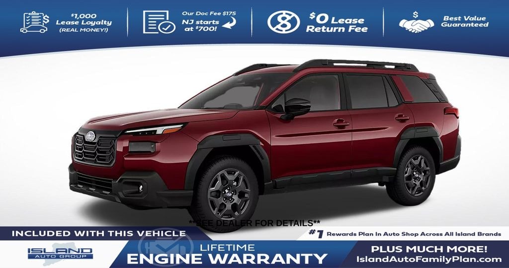 Crimson Red Pearl 2026 Subaru Outback Premium AWD CVT Lineartronic 2.5L 4-Cylinder DOHC 16V 4-Wheel Disc Brakes, 6 Speakers, ABS brakes, Air Conditioning, All-Weather Floor Liners, Alloy wheels, AM/FM radio: SiriusXM with 360L, Anti-whiplash front head restraints, Auto High-beam Headlights, Auto-Dimming Mirror with Compass and HomeLink, Automatic temperature control, Blind Spot Warning, Brake assist, Bumpers: body-color, Cargo Net, Driver door bin, Driver vanity mirror, Dual front impact airbags, Dual front side impact airbags, Electronic Stability Control, Emergency communication system: MySubaru Companion (5-years free), Exterior Parking Camera Rear, Four wheel independent suspension, Front anti-roll bar, Front Bucket Seats, Front Center Armrest w/Storage, Front dual zone A/C, Front fog lights, Front reading lights, Fully automatic headlights, Heated door mirrors, Heated Front Bucket Seats, Heated front seats, HVAC memory, Illuminated entry, Knee airbag, Leather steering wheel, Low tire pressure warning, Occupant sensing airbag, Outside temperature display, Overhead airbag, Overhead console, Panic alarm, Passenger door bin, Passenger vanity mirror, Power door mirrors, Power driver seat, Power Liftgate, Power steering, Power windows, Premium/Limited Package, Radio: Subaru 12.1" Multimedia System, Rear anti-roll bar, Rear Bumper Cover, Rear seat center armrest, Rear window defroster, Rear window wiper, Remote keyless entry, Security system, Speed control, Speed-sensing steering, Split folding rear seat, Spoiler, Standard Model, StarTex Upholstery, Steering wheel mounted audio controls, Tachometer, Telescoping steering wheel, Tilt steering wheel, Traction control, Trip computer, Turn signal indicator mirrors, Variably intermittent wipers, Wheels: 18" x 7J Aluminum-Alloy.